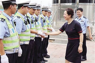 任丘市工会主席刘颖茹一行为一线交警送慰问品