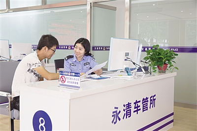 户籍室是服务群众的重要“窗口”。永清县公安局以打造“阳光户籍室”为切入点,大胆创新,拆除柜台,敞开办公,配备“智能机器人”,安装居住证、二代身份证自助办理一体机,推出上门送证、预约服务、延时服务等便民举措,大力营造家居般的温馨环境,受到群众一致好评,真正实现了民警与群众肩并肩“零距离”服务。