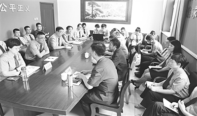 肃宁县人民检察院近日邀请县法院院长为入额检察官及青年检察人员讲授法律文书写作规范。其间,肃宁县检察院检察长李文颖(左一)与县法院院长王宇辉针对当前诉讼模式下审判过程中出现的赔偿问题进行了探讨,就“不能因满足利益需求而有损公平正义”这一原则达成共识,希望检法两院建立繁简分流制度,推行“轻刑快审”繁简分流办案机制。 李志军 丰宝旭 摄影报道