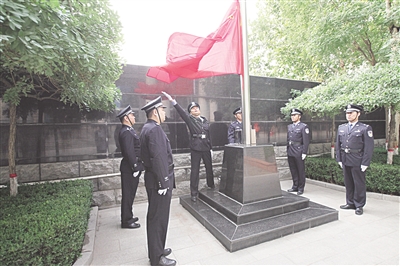 上午9时,省法院举行庄严隆重的升国旗仪式。在省法院机关院内,威武的法警队员迈着矫健整齐的步伐,护卫着国旗走向升旗台,并将鲜艳的五星红旗冉冉升起。院领导带领干警齐声高唱国歌,面向国旗行注目礼。省法院党组副书记、副院长朱良酷主持升旗仪式,并要求全省法院干警紧紧围绕“努力让人民群众在每一个司法案件中感受到公平正义”的目标,坚持司法为民公正司法,以初心砥砺前行的精神,以使命鼓舞奋发的斗志,以永不懈怠的精神状态和一往无前的奋斗姿态,为新时代全面建设经济强省、美丽河北作出更大贡献。