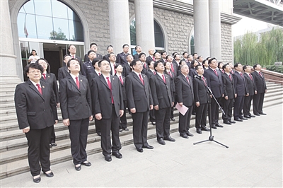 上午8时30分,省法院举行新任职人员颁发任命证书暨宪法宣誓仪式。党组书记、院长卫彦明受省人大常委会主任委托,为新任职人员颁发任命证书。随后,新任职人员面向国旗庄严宣誓。