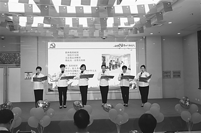 本报讯 (记者 王智勇)近日,邢台市桥东区人民法院在诉讼服务大厅组织开展“不忘初心、牢记使命”读书会活动,邢台市中院、桥东区人大及宣传部领导参加活动。 读书会上,来自邢台桥东法院各个部门的22名干警怀着真挚情感朗诵了《为人民服务》《奋斗不止,无惧无畏》《不忘初心,牢记使命》等16篇优秀文章。在悠扬庄严的背景音乐中,干警们的朗读慷慨激昂、豪情四溢,赢得了台下观众们一阵又一阵热烈的掌声。他们用一篇篇散文诗歌,一段段深情的朗诵,歌颂祖国,歌颂美好,用最美的声音传播了正能量,为祖国母亲献上了自己的祝福。 图为活动现场。