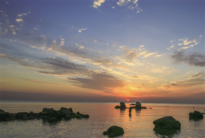 一夜无眠,辗转间无数念头闪现,我嗔怪自己的愚笨,词不达意不能言明心绪,至黎明的微光中依旧了无睡意。起早,披一件斗篷,追着朝阳走去。于是,在清晨遇见睡眼惺忪的你。我欣喜,你穿了如我一般的白色裙衣,安静,伫立,风来时,泛起涟漪。我们平静地互道早安,没有了夜色的遮掩,我有一些羞赧。我低头从一处鼓起的沙窝挖出贝壳,对着晨光端详,我捡拾起一把水草。忽然,一个浪头嬉戏,打湿我的裙角。我光着脚在沙滩上走啊走,走到很远,走到迷失自己。那天,我们在一起好久,久到我掏空全部心事,释放全部情绪,然后毫无杂念地沉沉睡去。