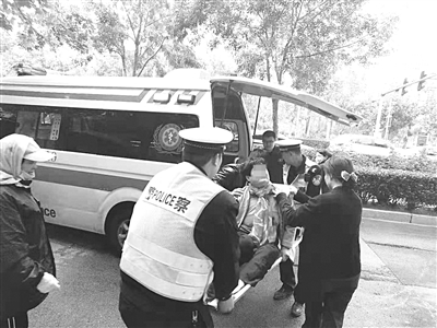 泊头市公安交警大队值勤民警救助受伤老人