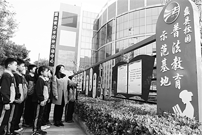 为依法维护未成年人合法权益,增强学生辨别是非和自我保护能力,蠡县开展“普法进校园”活动,通过展板以漫画、案例介绍等形式宣传法律知识,引导学生树立法治意识,自觉抵制校园欺凌、故意伤害、抢劫等违法犯罪行为。图为10月22日蠡县第三实验小学师生在观看法治展板。 刘莹 蔡韶军 摄