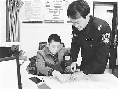 图为违法司机在询问笔录上签字按手印。