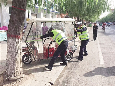 魏县交警大队对车辆乱停乱放违法行为加大整治力度
