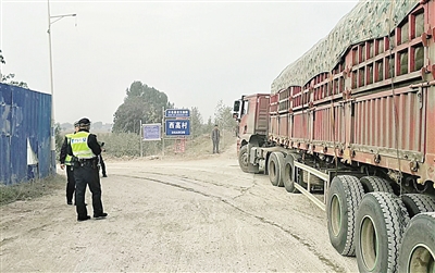 11月1日一大早,中队长郭亚帅及时赶到现场,负责带队依法处理这几辆“百吨王”。由于附近村镇路上行人车辆越来越多,这几辆“百吨王”超载车体型巨大,在行驶和转弯时都会严重影响附近群众正常通行。为防止这些“百吨王”出现意外事故伤害到过路群众,必须尽快将“百吨王”安全带离卫河大堤。郭亚帅主动驱车在前面开道指挥,由民警李振强等驾驶警车断后保障,“押送”这几辆超级“百吨王”到位于106国道上的治超站过磅称重。