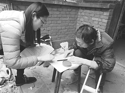 图为11月7日,法律援助中心工作人员接到姚某的求助电话,主动上门,对其进行法律援助。 本报记者 鲍娜军 摄