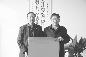 近日,辛集市检察院对2012年度职务犯罪预防工作先进单位进行了表彰。图为辛集市检察院党组副书记、副检察长吴旭(左)为获得表彰的河北辛集中学颁发奖牌。 陈光普 杜二虎 摄影报道