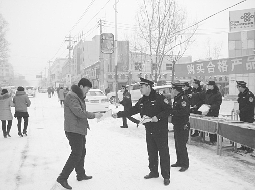 为使群众掌握购买、燃放烟花爆竹的安全常识,最大限度地预防和减少春节期间各类烟花爆竹安全事故发生,1月20日,涞源县公安局危爆大队组织全体民警走上街头,开展了烟花爆竹燃放安全集中宣传日活动。图为民警向群众发放宣传材料。