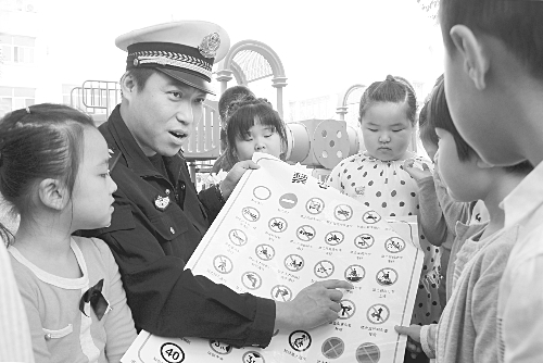 日前,沧州市交警一大队民警来到市第二幼儿园,以通俗易懂、幽默风趣的语言,讲解交通安全常识,发放《致学生家长的一封信》,发动孩子们回家后向父母宣传道路交通安全知识,并鼓励孩子通过“小手拉大手”,在日常生活中及时制止大人的不文明交通行为。