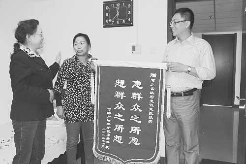 近日,专程从邯郸市峰峰矿区赶来的李秀芹和律师一起,把感谢的锦旗送到省政府法治办行政复议处调研员张段英手中。李秀芹的丈夫高某原在冀中能源峰峰集团工作,2011年3月突发脑出血死亡,李秀芹申报了工伤,却没有得到认定,随后,她到省法治办申请了行政复议。负责接待她的正是张段英。在详细了解了案情后,张段英不辞劳苦,从2012年6月至今年8月,张段英数次与劳动行政部门沟通,三下邯郸调查了解,多次与用人单位交流协调。正是有了张段英的不懈努力,最后,李秀芹的丈夫被认定为工伤。 李倩军 摄