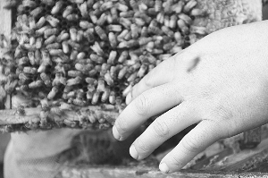 对于养蜂人而言,被蜜蜂蜇是常有的事儿,李淑彦告诉记者,现在被蜂蜇一下,对他们来说就跟蚊子盯一下一样,只是一个小红点,身体里已经有了免疫功能。
