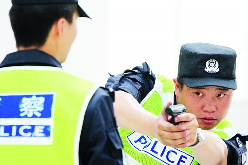 为确保基层一线民警在处置严重危害公共安全暴力犯罪中依法、规范、有效使用武器警械,及时制止、震慑犯罪,提升街面治安秩序的控制能力,从5月底开始,石家庄市公安局在全市公安机关组织开展了实战射击专项训练活动。图为民警在训练中进行战术动作训练。