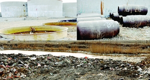 秦皇岛市某区一小造纸厂将生产废水未经处理,直接排放至厂区周围。污水呈黑褐色像酱油状,有刺鼻气味,对水体及周边农田作物造成严重污染。目前,该厂已被关停取缔。图为造纸厂内景及排放废水渗坑。