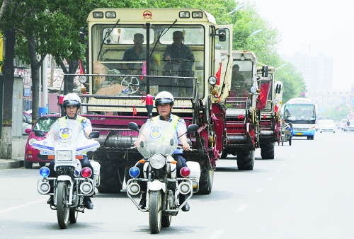 在联合收割机南下或返回跨区作业期间 沧州市公安交警二大队及时出台相应服务措施