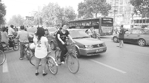 红旗大街与石风路交口早市时人车混行的场