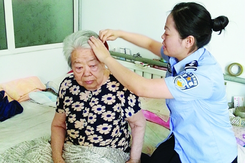 6月7日,肥乡县公安局女民警来到该县光荣院,对入住老人进行上门服务。女民警们为老人带去了慰问品,并为他们换洗了衣服,为光荣院打扫了卫生,同时为行动不便、需要办理身份证的老人采集了头像。 本报记者 李建华 摄