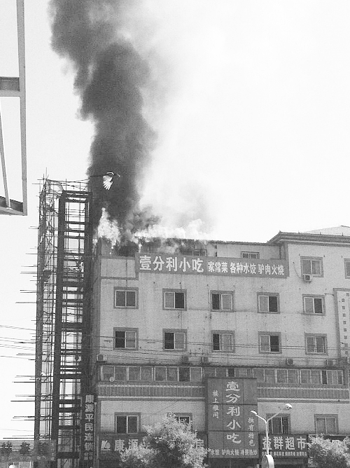 6月7日9时保定市裕华东路一处楼房顶层起火
