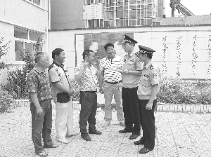 6月9日,遵化市公安局建明派出所民警深入到西铺村,就开展党的群众路线教育实践活动对村民进行回访,聆听村民讲述当年西铺村自力更生、艰苦创业的穷棒子精神。图为民警在听取村民对派出所工作的意见和建议。 本报记者 刘文利 摄