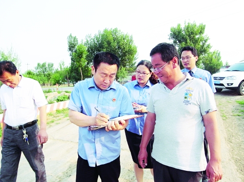 武强县检察院坚持送法下乡,对农村家庭农场和农民专业合作社进行调研和遵纪守法警示教育,为新农村建设保驾护航。图为近日该县检察院检察长吕新华一行到豆村乡吉屯村红旗家庭农场,与农场场长在田间地头进行交流。