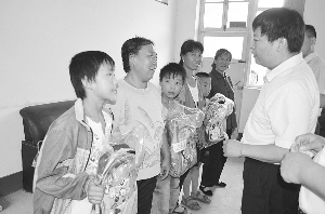 本报讯 (吴银梁)6月25日上午,邢台县人民法院党组书记、院长董英辰和党组成员、政治处主任陈喜河等一行冒雨为邢台县北小庄乡小学的3名贫困学生送去了书包、文具及每人500元的生活补助金,并勉励他们要好好学习。