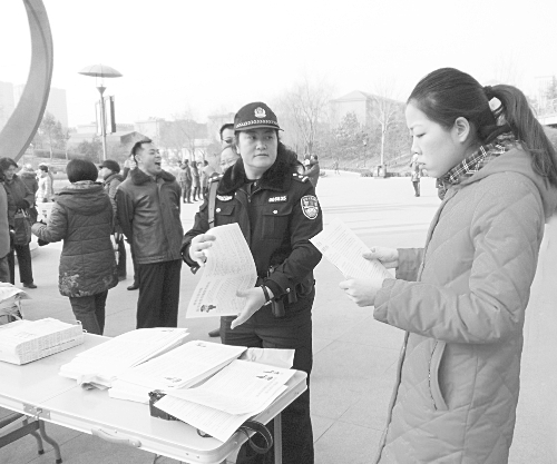针对当前电信诈骗案件多发情况,1月31日上午,省会桥西公安分局时光综合警务服务站民警在时光公园向市民发放了防范电信诈骗宣传材料,并就群众提出的问题进行解答。图为市民阅读宣传材料。