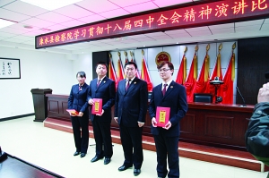 着力加强理想信念和职业道德建设。认真学习宣传贯彻党的十八大和十八届三中、四中全会精神,深入开展党的群众路线教育实践活动,采取集中辅导、专题研讨、撰写心得体会、观看警示教育片等多种形式,深入查找宗旨意识、群众观念等方面存在的问题。出台了周五学习制度,先后组织全体干警观看《焦裕禄》等革命传统电影,进行了活动专项知识测试,从各方面确保了活动效果。院领导班子从转变自身作风做起,扎实开展“大宣讲、大调研、大走访”和“蹲点服务”行动,组织全院干警到太行监狱接受警示教育,到保定留法勤工俭学纪念馆参观学习,进一步坚定了政治方向,树牢了群众观念。