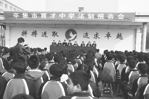 辛集市检察院党组成员、副检察长王爽近日带员到本市育才中学,为该校2000名学生上了一堂“与法同行、健康成长”的专题法治教育讲座,以期提高未成年在校生学法、懂法、守法的意识。贾明考 孙莎 王占 摄影报道