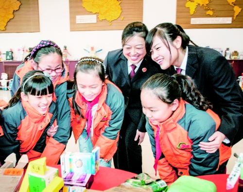 涿州市人民检察院会同该市教育局、司法局,开展“护蕾行动 普法先行”教育未成年人活动。11月17日,活动启动仪式在涿州市双语学校举行,5位“护蕾”讲师、43所中小学校校长及300多名学生代表参加了启动仪式。活动旨在使该市中小学生更好地学法、懂法、守法、用法,远离犯罪,促进未成年人全面健康成长。图为检察官在与小学生们交流如何防止未成年人犯罪后,欣赏孩子们利用废旧品制作的动植物样品。