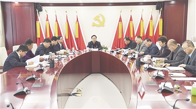 图为省检察院召开党组(扩大)会,深入学习贯彻党的十九大精神,传达学习省委九届五次全会精神的场面。