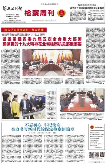 11月6日,省检察院侦查监督一处党支部召开支部大会,再次全文研读、深入学习、全面领会习近平总书记在党的十九大上所作的报告,支部书记贾志宏领读报告。大家结合对报告的理解谈体会讲感受。一致表示,要严格按照省检察院党组关于深入学习宣传贯彻党的十九大精神的专项部署,将学习贯彻党的十九大精神作为当前和今后一个时期的首要政治任务,下大力气学懂、学深、学透,以党的十九大精神为引领,全力做好各项侦查监督工作。