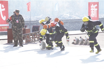 11月19日至26日,省公安消防总队在邢台市举办全省练兵比武竞赛活动,比武竞赛共设置楼层火灾救人操、纵深灭火救人操、楼层火灾内攻操等8个科目,来自全省的600多名消防官兵展开激烈角逐。比武竞赛结束后,省公安消防总队将对评选出的团体总分前三名的支队、现役中队及政府专职消防队进行通报表彰。