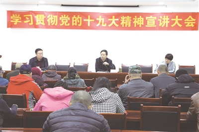 石家庄市桥西区检察院党组书记、检察长张伟新于日前到辖区玉村,为振头街道、玉城社区和玉村的干部群众宣讲党的十九大精神。 韩龙光 摄