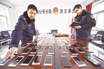 日前,唐山市公安局路南分局赵庄派出所民警夜间巡逻至唐山九中西侧时,发现两辆车停在路边。巡逻民警立即下车对两辆可疑车辆进行检查。经检查发现,第一辆车内只有一名女子,当民警检查第二辆车时,发现车上堆满手机,一名男子坐在后面,另两名男子在前面给手机贴标签。经讯问,证实系犯罪嫌疑人在车内正准备将盗窃的手机销赃。随后,民警当场缴获被盗手机63部以及仿真手枪一把、砍刀一把、棒球棍两支。目前,3名犯罪嫌疑人已被刑事拘留。