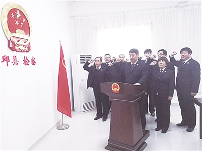 邱县检察院于国家宪法日当天组织检察官进行宪法宣誓活动。图为该院党组书记、检察长张伟带领大家进行宣誓。 万永强 曹信平 摄影报道 |