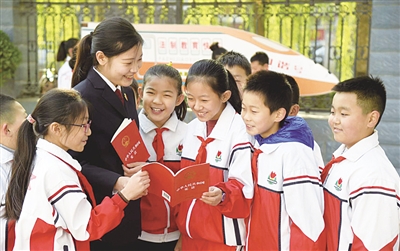 | 石家庄市桥西区检察院“阳光团队”的青年检察官们来到建胜路小学,开展国家宪法日校园法治宣传活动。图为检察官为同学们讲解宪法知识。 谢飞 张晓峰 摄影报道 |