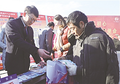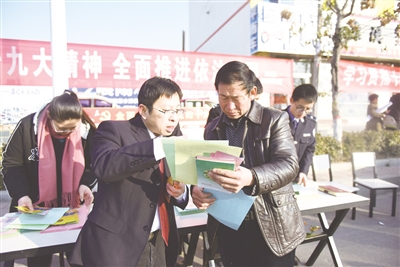| 巨鹿县检察院组织干警上街,通过设置咨询台、派发宣传资料等形式,弘扬宪法精神,开展法治宣传,现场为群众提供多方面专业咨询。 闫丽婷 摄影报道 |