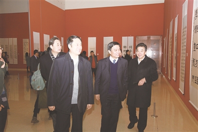 12月5日,京津冀首届暨河北省第二届律师书画摄影作品展在石家庄市美术馆举行。省司法厅党委副书记、副厅长王大为,河北省律师协会会长李益民出席开幕式并致辞。此次展出活动由河北省律师协会主办,北京市律师协会、天津市律师协会协办,来自省人大、省政协,以及北京市律师协会、天津市律师协会有关领导、专家和律师界代表共400余人参加了开幕式。京津冀三地110多名律师的近200幅作品参展。图为王大为等领导及嘉宾观看参展作品。