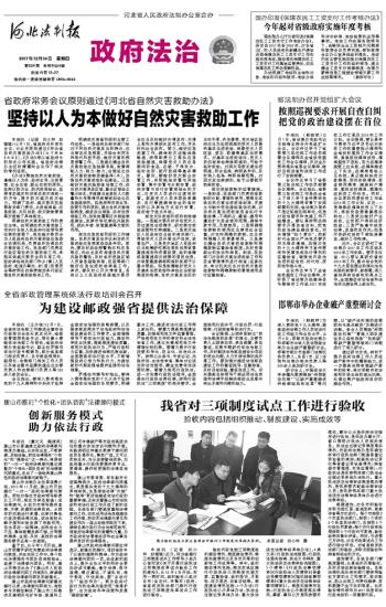 本报讯 (记者 刘小林 赵媛媛)近日,河北省推行三项制度试点工作领导小组办公室印发《关于开展行政执法三项制度改革试点验收工作的通知》,从12月6日开始,利用一周时间,组织验收小组对各市(含定州、辛集市)政府、省直有关执法部门推行行政执法三项制度改革试点工作进行验收。