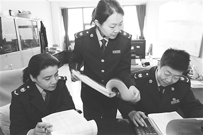 年终岁尾,为更好地服务纳税人,进一步提高稽查质效,石家庄市地税稽查局加快运转速度,高效、快捷办结每一起稽查案件,以优质的服务提高纳税人的满意度。图为工作人员集中商议案情。 李君 摄