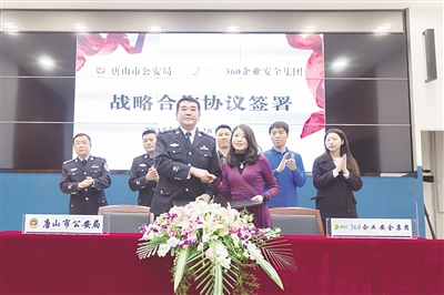 12月28日上午,唐山市公安局与美团点评、360企业安全集团分别签署战略合作协议,今后将在数据合作、智慧城市建设、处突联动、电信反诈骗宣传等领域展开全面深入的合作,以此创新警企合作方式,深化公安信息化建设,不断提升公安机关反恐防暴、打击新型违法犯罪、维护社会稳定的能力。 图为签署协议现场。 本报记者 刘文利 摄