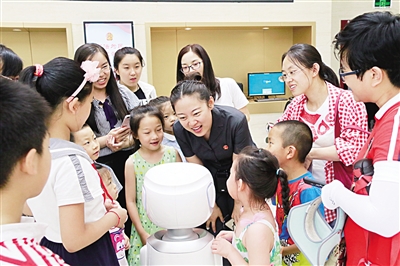 在省法院干警的带领下,小朋友们先后参观了省法院诉讼服务中心、河北法院文化展览馆,并观摩了一场校园欺凌案件的模拟庭审。通过与诉讼服务中心“小明星”——导诉机器人“彬彬”的现场对话,与模拟法庭法官的交流互动,小朋友们对法律产生了浓厚的兴趣,甚至有的还迫不及待地穿起了法袍,拿起法槌,当起了“小法官”,过了一把开庭审案的瘾。