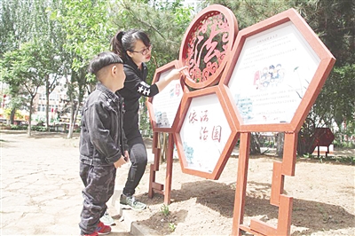 近日,秦皇岛市山海关区司法局以加强法治宣传阵地建设为重点,在莲花湖公园打造法治文化公园,助推全区法治建设进程。法治文化公园秉承“寓学法于休闲中”的理念,因地制宜,合理融入法治元素,通过解读、案例、漫画等形式向群众介绍法律知识,传播法治文化,使法治观念深入人心。图为群众在法治文化公园学习法律知识。 刘芳 摄