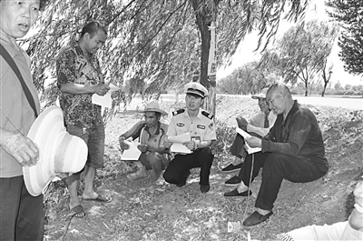 近日,磁县交警大队民警走进辖区田间地头,针对夏忙期间常见的交通违法行为,深入开展了农村交通安全宣传活动,提高了群众的交通安全意识和法治意识,增强了群众对交管工作的理解,取得了较好的社会效果。 耿贝 摄
