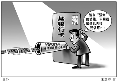 一张带芯片的银行卡,无须输密码也不用签名,POS机上一挥,在一定额度内即可完成支付。这种“一挥即付”的功能叫作小额免密免签支付,是中国银联为提升客户体验,为持卡人提供的一种小额快速支付服务。自2015年产生之日起,无论是人工办卡还是自助领卡,都没有得到有关小额免密免签支付功能已默认开通的风险提示。