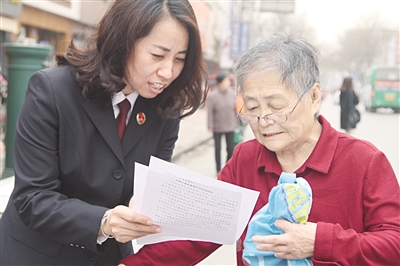 11月12日上午,遵化市人民检察院干警来到广场、社区等人流密集区,通过现场咨询、悬挂宣传条幅等形式,号召群众积极向检察机关提供公益诉讼线索。图为干警正在解答群众提出的问题。