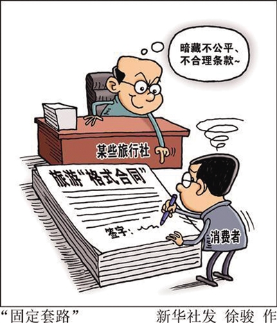 记者日前了解到,某些不公平、不合理的条款往往隐藏于冗长的合同条文之中,具有一定的迷惑性,让消费者难以发现。而消费者往往没有认真阅读或详细了解条款内容,就在旅游经营者预先拟定的“格式合同”上草率签字,直到发生纠纷才发现落入了某些精心设计的“固定套路”,给后续维权造成障碍。
