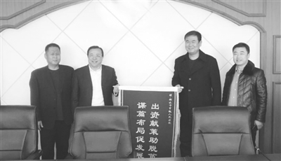 本报讯 (张贺)近日,阜城县崔庙镇党委书记酒大庆、镇长申涛一行三人,将一面写有“出资献策助脱贫 谋篇布局促发展”的锦旗,送到衡水市中级人民法院,以此表达对衡水中院驻村工作队的肯定和感谢。衡水中院党组副书记、常务副院长夏国征以及驻村工作队有关队员一起参加了座谈。